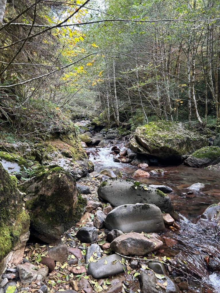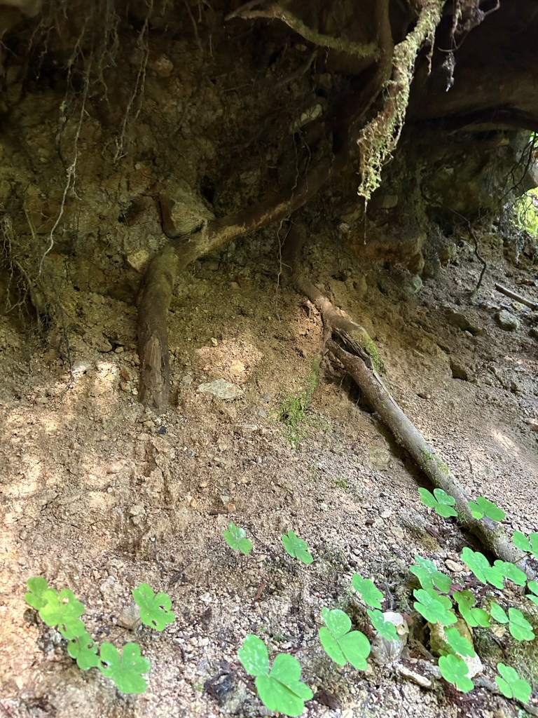 It isn’t exactly clear in the video, but the slope to the north (upstream) had a landslide at some point. The ground is extremely loose sandy soil and gravel, with a minimal amount of brush and moss holding it together. There were several trees that had gone over during the landslide event. Judging by the concave feature of that part of the hill, a decent amount of the surface slid into the creek. I found a drainage chute that allowed me to get into the creek bed, and I spent the first part of the search going through debris piles and the undercut bank along the stream.