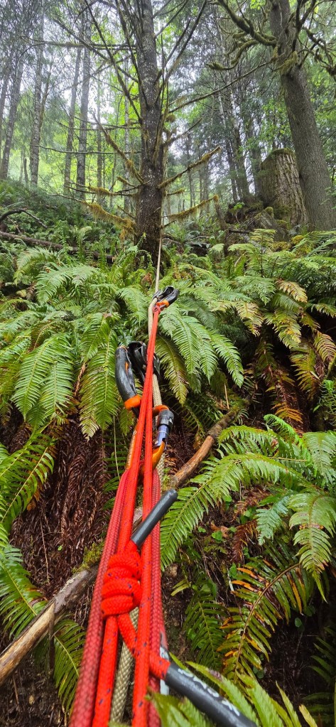 While the ground team cleared the next search box, the ropes team finished their day working the slope between the road and the creek. Based on the photos they sent, I have to believe they are some of the first searchers to really get into that terrain.