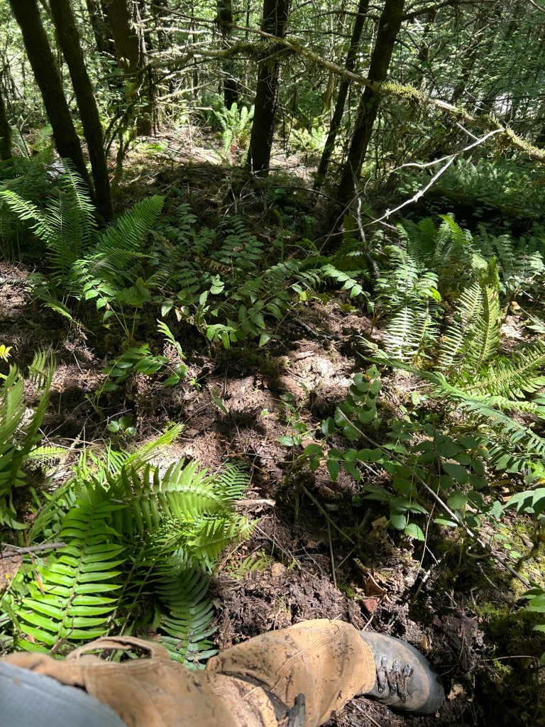 It was a very full day of grid searching up hill. The box was about 50’ by 100’, or roughly equal to the box the team cleared in a couple of hours. I was working until the late afternoon to cover the same square footage. I ended up working in just a t-shirt by the afternoon.
